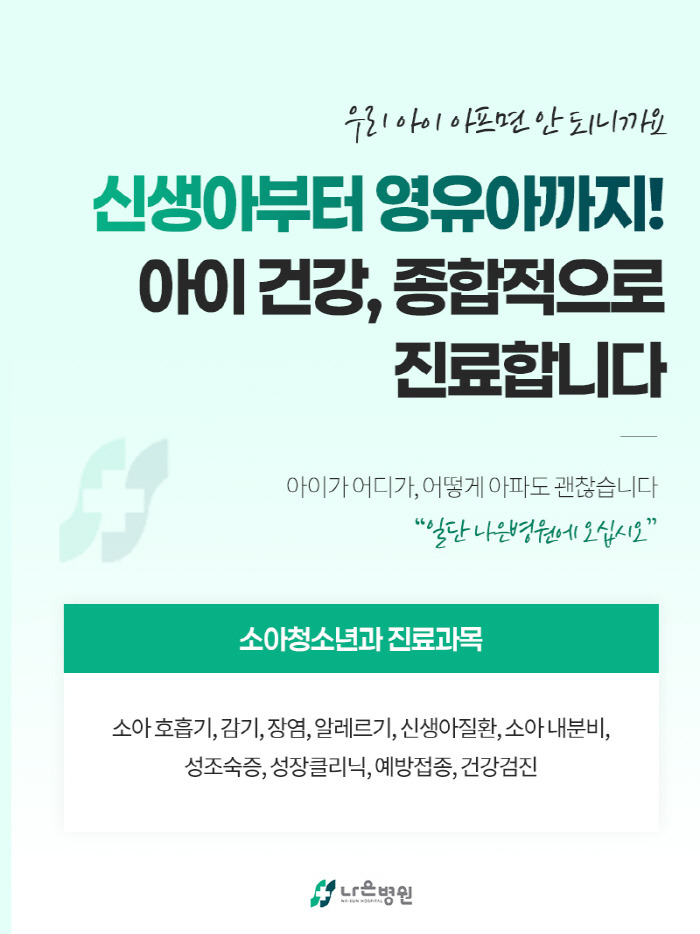 안녕하세요, 인천동구소아과 인천나은병원입니다.