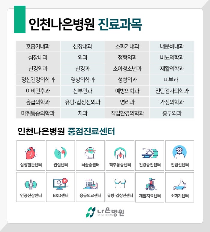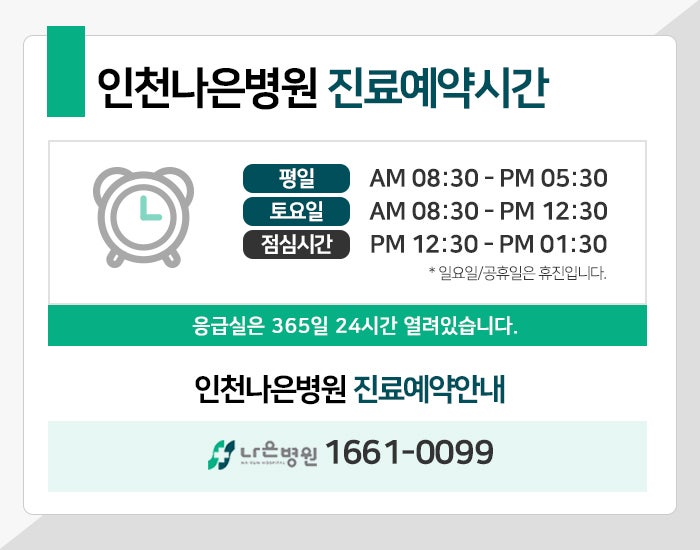 또 몸에 이상 증상이 나타나고 있는 것 같다며 진료 시간을 참고하셔서 지체하는 일 없이 인천서구신경과 인천나은병원을 찾아주시기 바라는데요. 건강한 삶을 만들어 나갈 수 있도록 언제나 최선을 다하도록 하겠습니다.